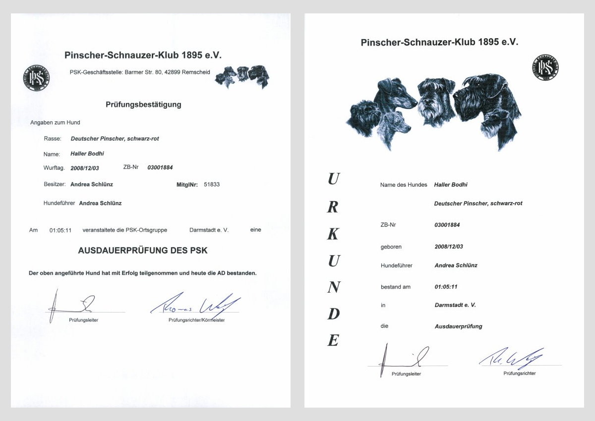 01.05.11 Wir waren sportlich und haben bei der OG Darmstadt an der AD - Ausdauerprüfung des PSK (für Pinscher 15 km Laufen am Fahrrad) teilgenommen und mit Bravour bestanden... weiter